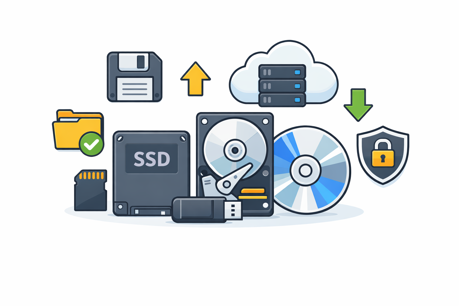 - Płyty CD/DVD/Blu-ray – nośniki optyczne używane do archiwizacji danych, dystrybucji oprogramowania oraz multimediów.