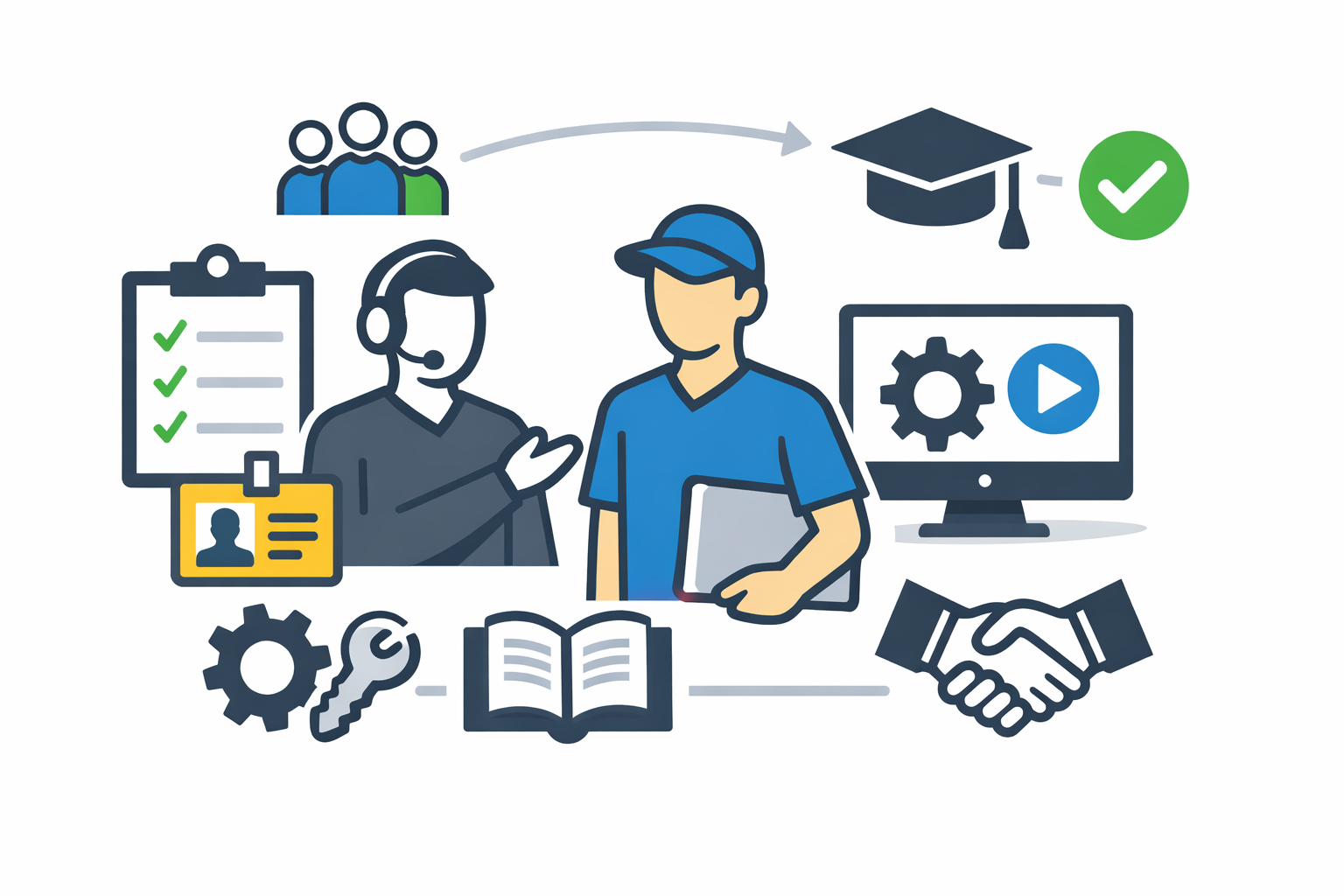 - Materiały informacyjne i podręczniki dla nowych pracowników – obejmują przewodniki po firmie, kodeksy postępowania, instrukcje korzystania z systemów informatycznych oraz zestawy najczęściej zadawanych pytań. Umożliwiają samodzielne zapoznanie się z najważniejszymi informacjami dotyczącymi organizacji.